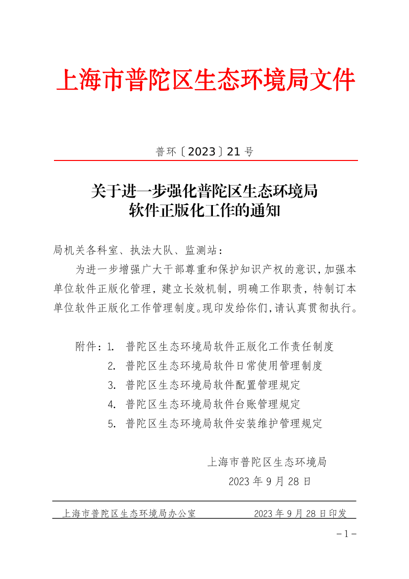 附件:1. 普陀区生态环境局软件正版化工作责任制度