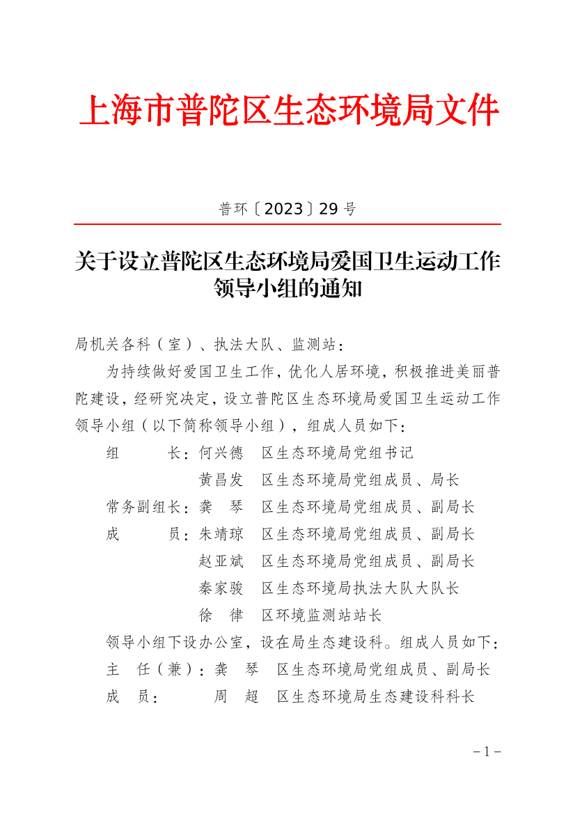关于设立普陀区生态环境局爱国卫生运动工作领导小组的通知