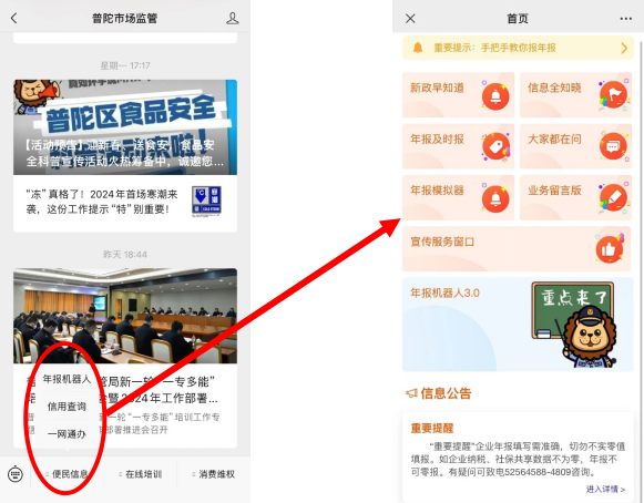 其他相关问题,可以通过扫描下方二维码,关注“普陀市场监管”公众号,在页面左下角“便民信息”栏目中选择打开“年报机器人”进一步了解。
