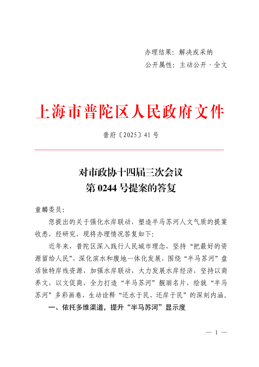 您提出的关于强化水岸联动,塑造半马苏河人文气质的提案收悉,经研究,现将办理情况答复如下: