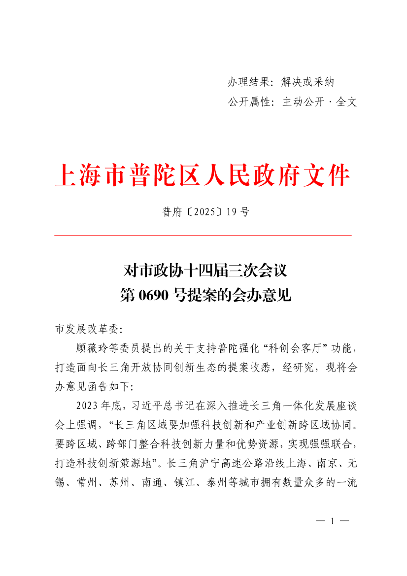 顾薇玲等委员提出的关于支持普陀强化“科创会客厅”功能,打造面向长三角开放协同创新生态的提案收悉,经研究,现将会办意见函告如下: