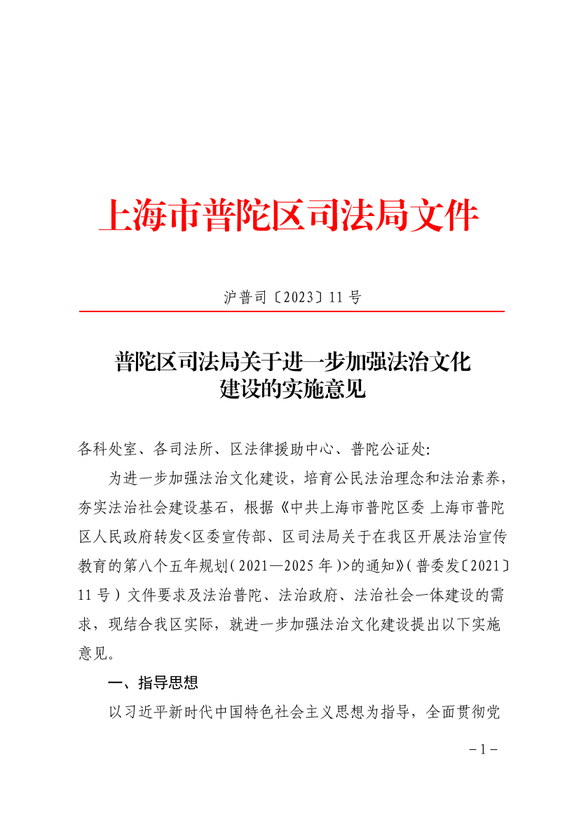 普陀区司法局关于进一步加强法治文化建设的实施意见