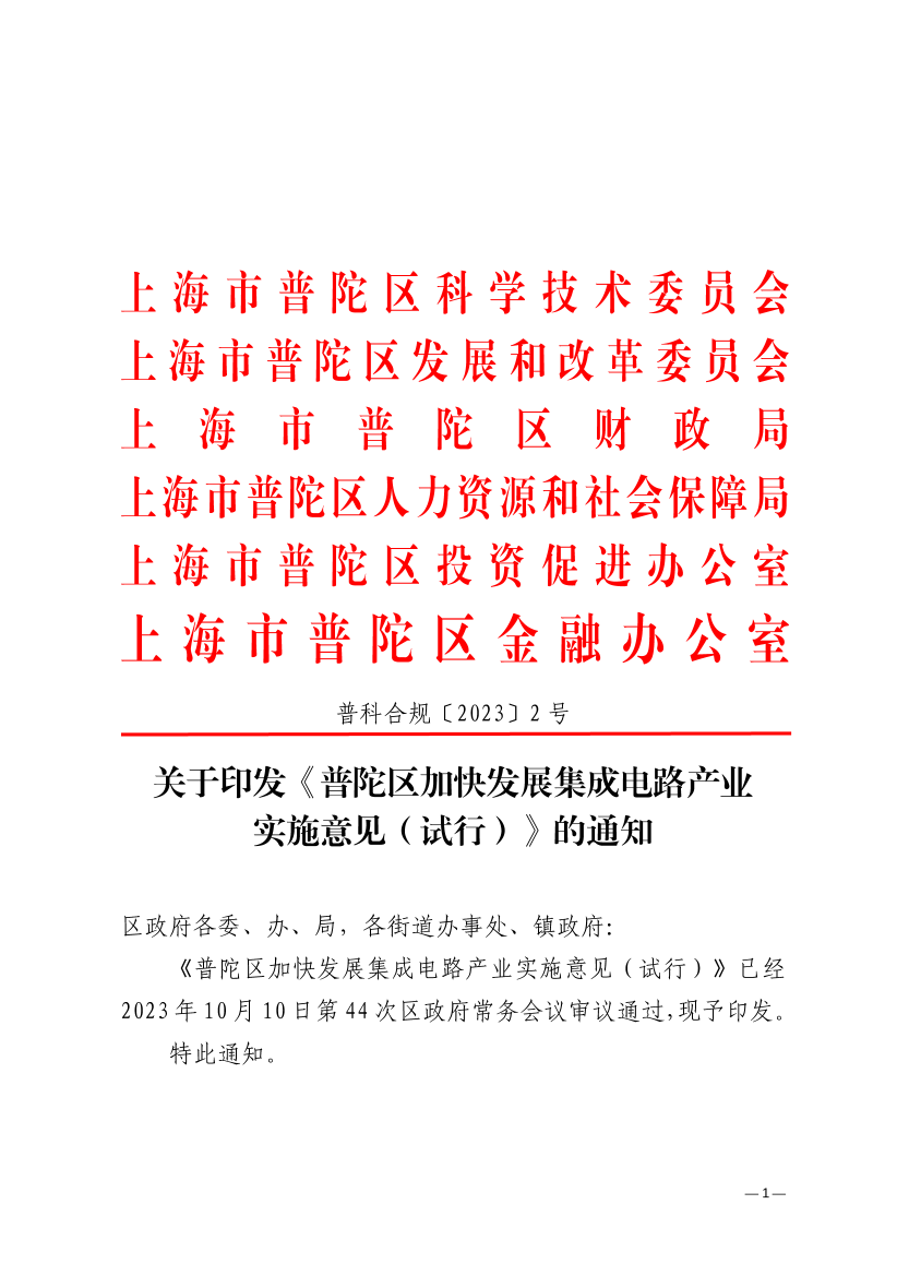 《普陀区加快发展集成电路产业实施意见(试行)》已经2023年10月10日第44次区政府常务会议审议通过,现予印发。