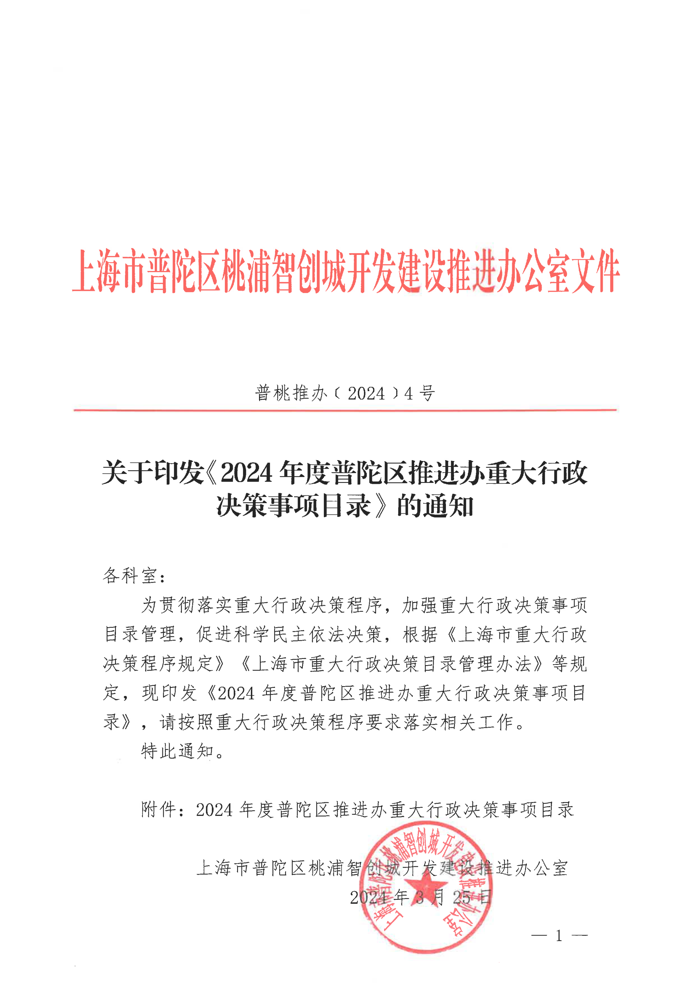 关于印发《2024年度普陀区推进办重大行政决策事项目录》的通知