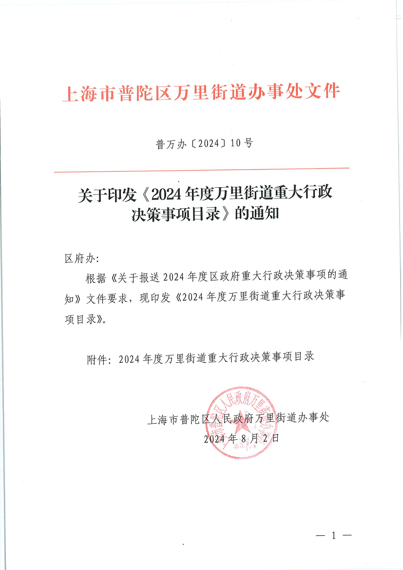 关于印发《2024年度万里街道重大行政决策事项目录》的通知