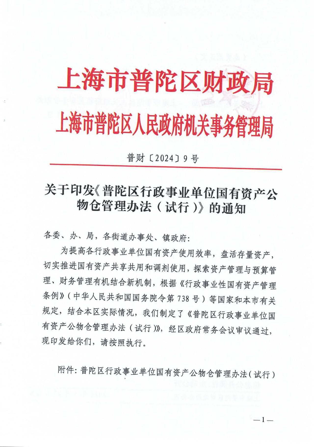 关于印发《普陀区行政事业单位国有资产公物仓管理办法(试行)》的通知