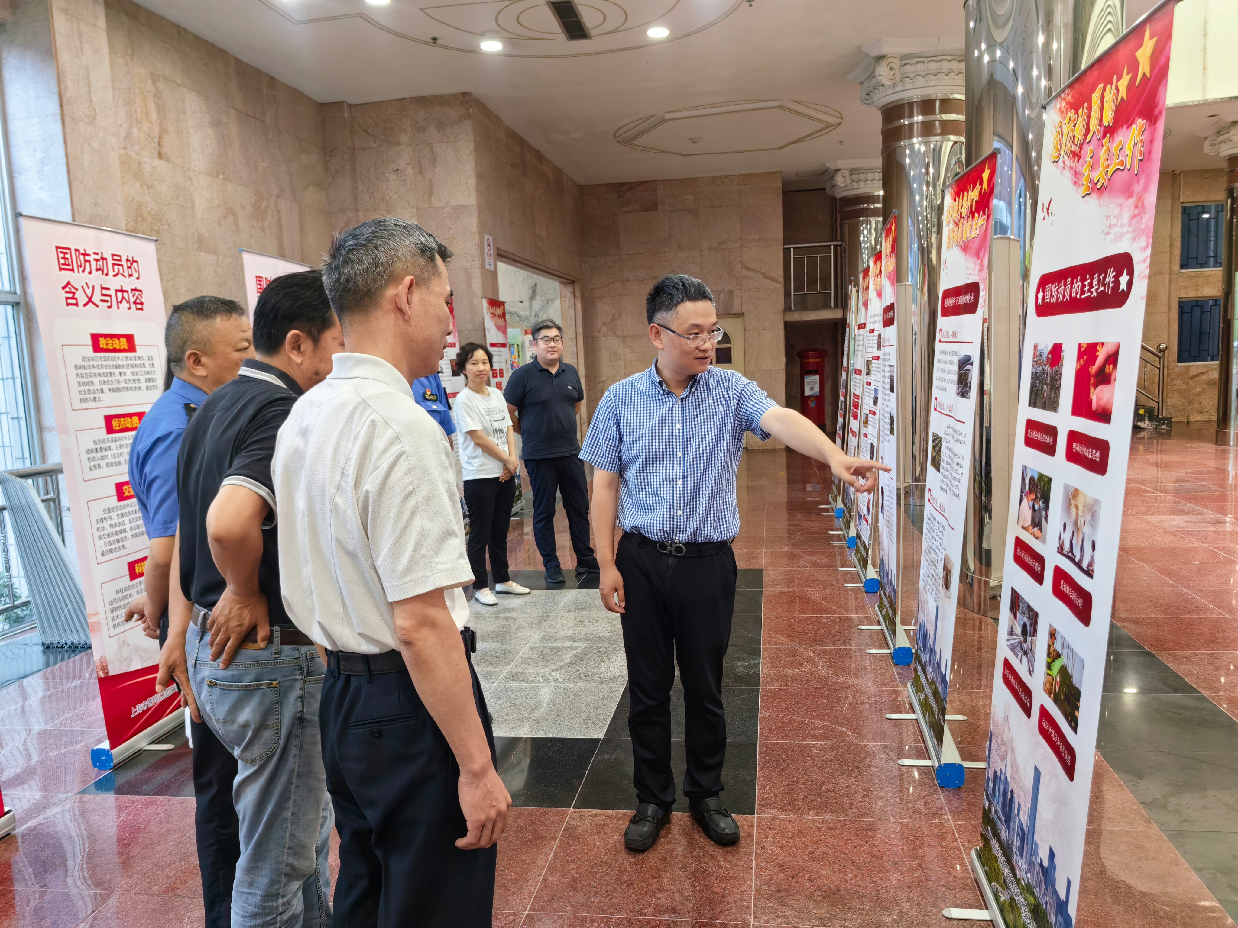 镇党委委员、人武部部长、机关党委书记何果龙组织机关各支部进行国防知识展板参观学习。