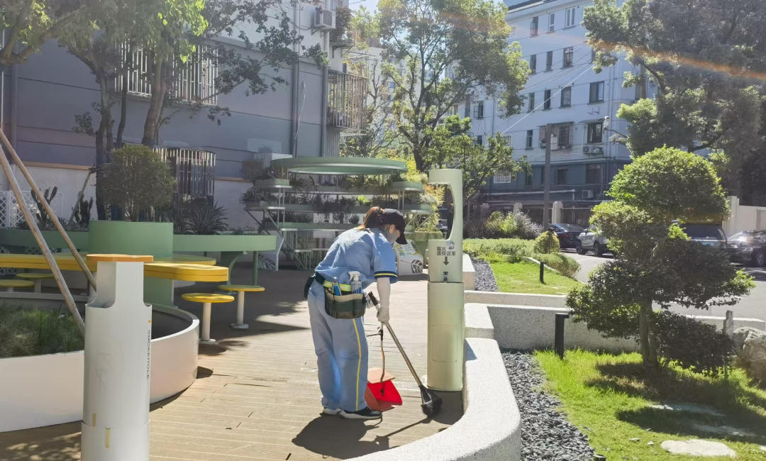 8月28日,记者走进泰山人民坊,首先映入眼帘的是志愿者正在免费派发清凉饮品,老人们坐在崭新的休闲长椅上闲聊,孩子们也有了安全活动,智慧门禁系统有序运行,社区食堂飘来阵阵饭菜香气。
