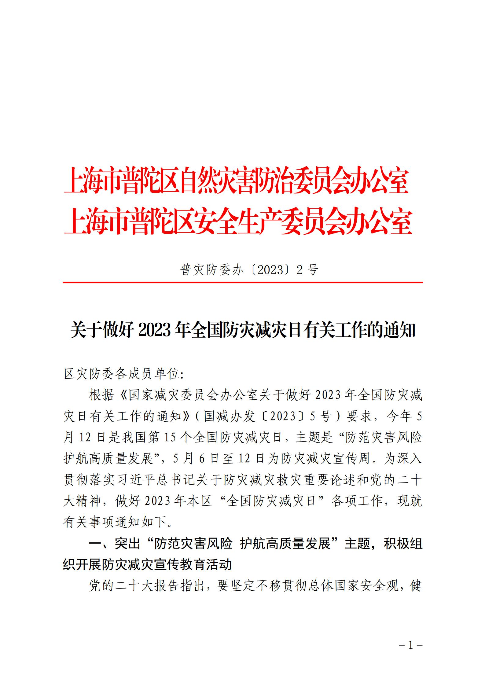 根据《国家减灾委员会办公室关于做好2023年全国防灾减灾日有关工作的通知》(国减办发〔2023〕5号)要求,今年5月12日是我国第15个全国防灾减灾日,主题是“防范灾害风险 护航高质量发展”,5月6日至12日为防灾减灾宣传周。为深入贯彻落实习近平总书记关于防灾减灾救灾重要论述和党的二十大精神,做好2023年本区“全国防灾减灾日”各项工作,现就有关事项通知如下。