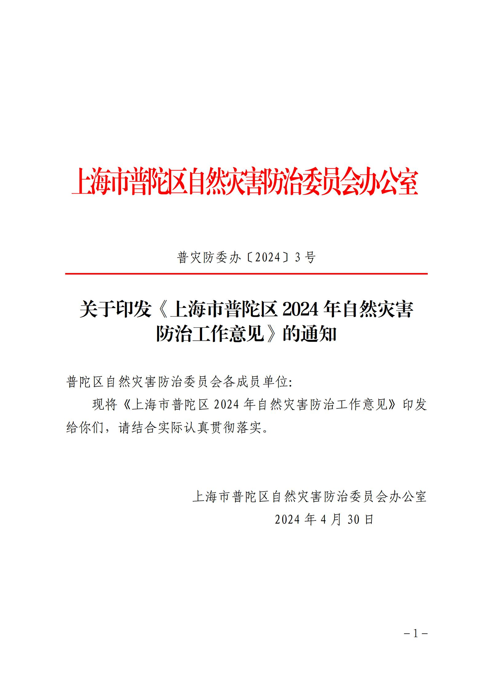 关于印发《上海市普陀区2024年自然灾害防治工作意见》的通知
