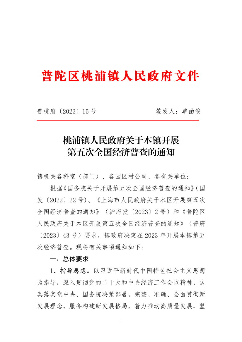 根据《国务院关于开展第五次全国经济普查的通知》(国发〔2022〕22号)、《上海市人民政府关于本区开展第五次全国经济普查的通知》(沪府发〔2023〕2号)和《普陀区人民政府关于本区开展第五次全国经济普查的通知》(普府〔2023〕43号)要求,镇政府决定在2023年开展本镇第五次经济普查。现将有关事项通知如下: