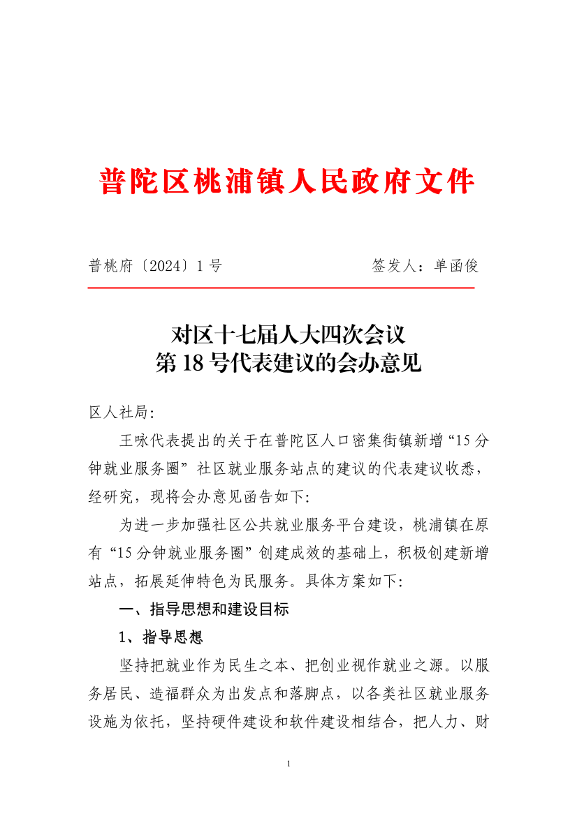 王咏代表提出的关于在普陀区人口密集街镇新增“15分钟就业服务圈”社区就业服务站点的建议的代表建议收悉,经研究,现将会办意见函告如下: