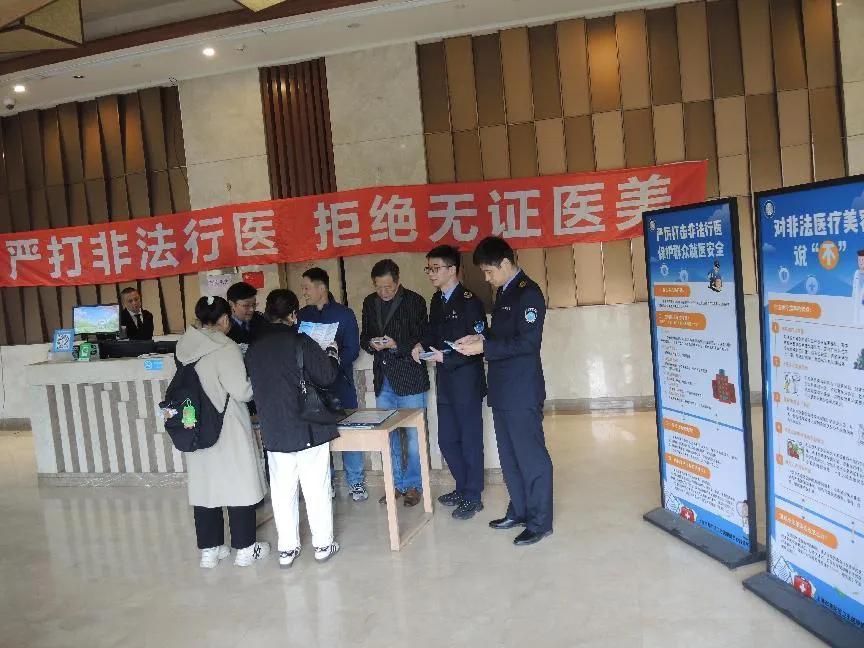 2024年11月29日 来源: 上海普陀为保护本区人民群众健康权益,维护医疗美容秩序,增强群众对无证医美的认识,普陀区疾病预防控制中心(普陀区卫生健康监督所)分别于2024年11月25日、2024年11月27日,联合宜川路街道、长寿路街道在远景大厦、财富时代大厦开展打击无证行医宣传活动。