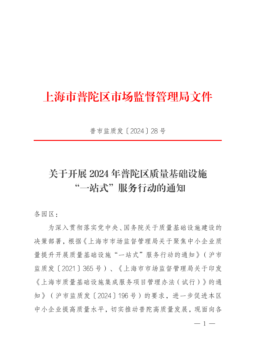 关于开展2024年普陀区质量基础设施 “一站式”服务行动的通知