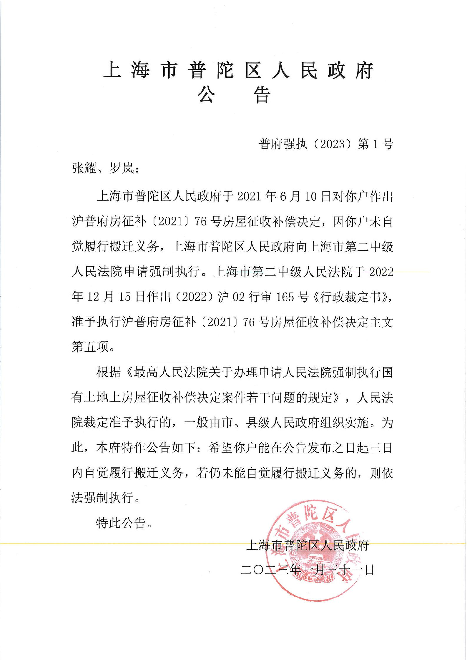 公告(银宫3113铺位张耀、罗岚)