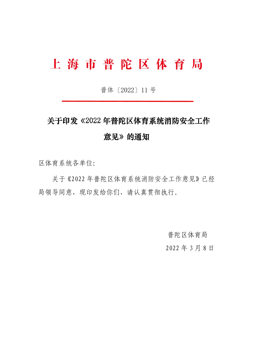 关于印发《2022年普陀区体育系统消防安全工作意见》的通知