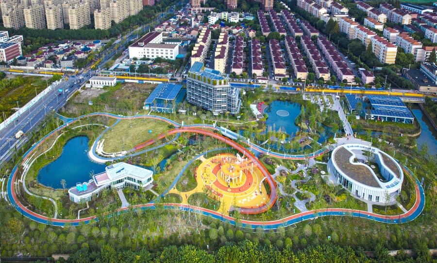 市园林院所在的长三角一体化绿色科技示范楼,是目前上海市最大单体的零能耗建筑,与相邻生态公园“李子园公园”实现了“绿色零碳”联动。