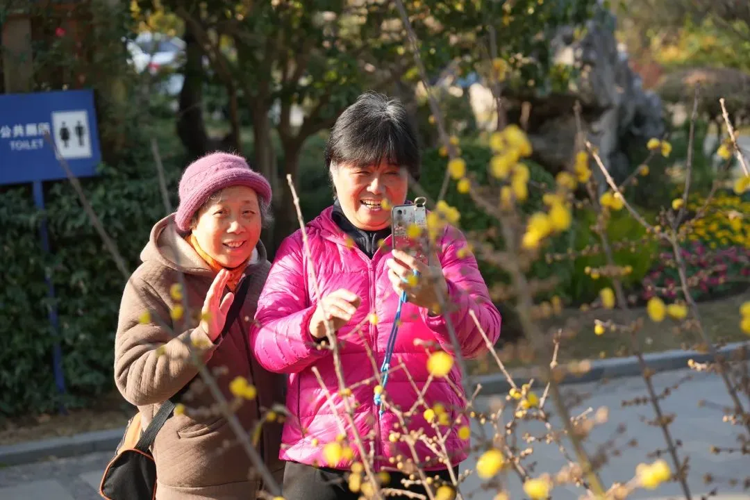 “趁着天气晴好,和小姐妹特地来赏蜡梅,感觉特别有意义。”侯阿姨乐呵呵地表示,“蜡梅是新年的花,寓意着新的一年、新的开始。希望我和小姐妹继续绽放出属于自己的光彩。”