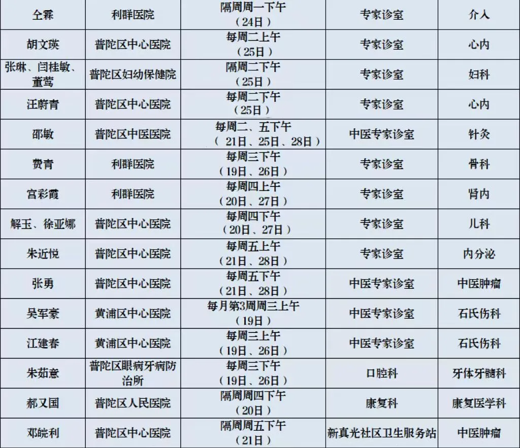 为进一步满足辖区居民就诊需求,2月,真如社卫的专家门诊安排来啦!