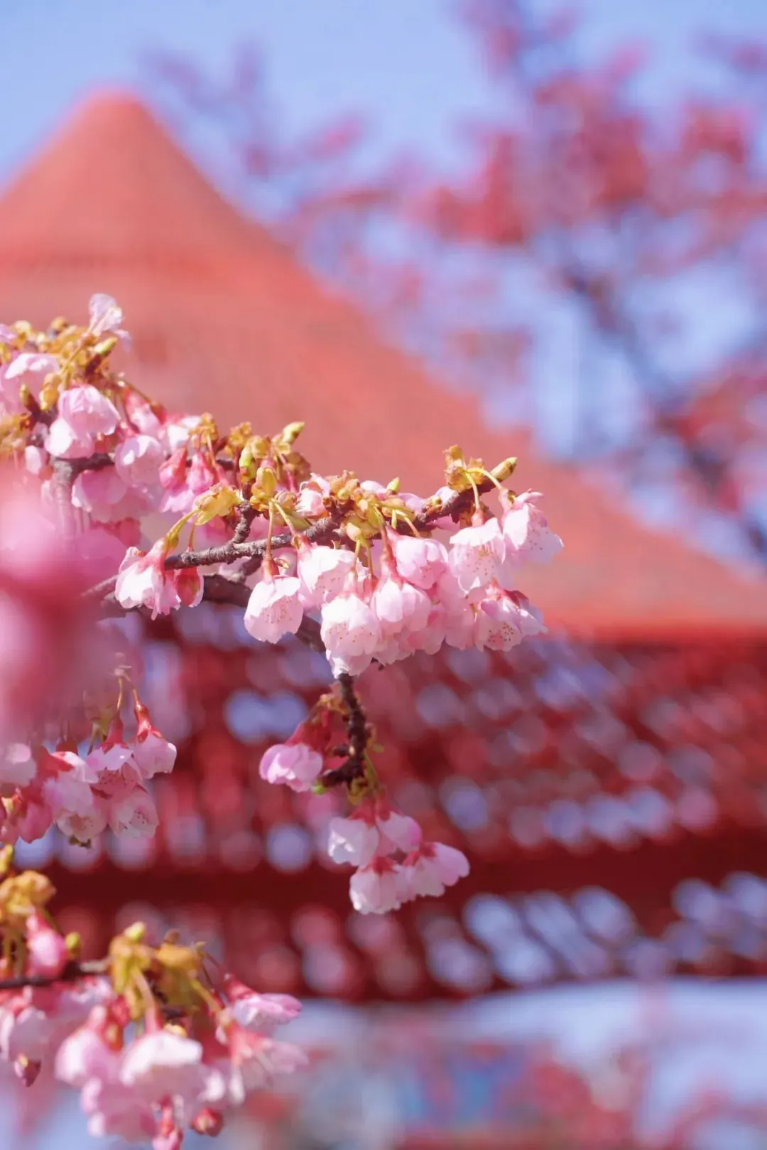 寒意还未完全褪去,大宁灵石公园的寒绯樱已悄然绽放。朵朵可爱,如粉色铃铛,蓝天之下,粉嫩清新。