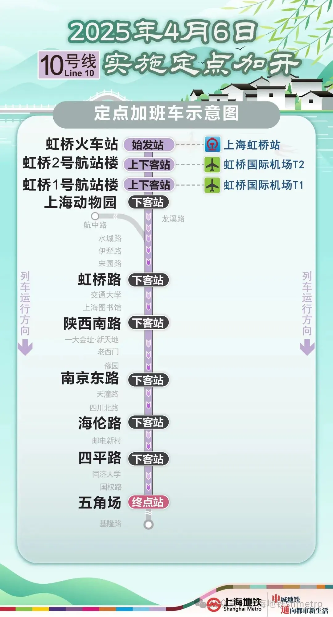 为做好节假日返程期间枢纽站客流疏散工作,2025年4月6日(周日)1、2、10、17号线实施定点加开方案,加开末班车延长至24:00。