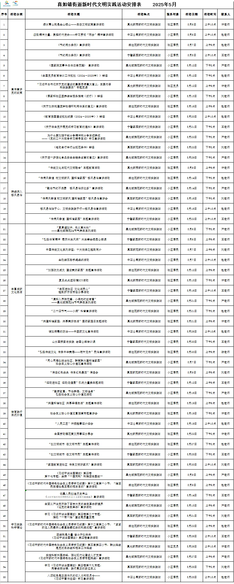 2025年5月份真如镇街道新时代文明实践活动安排表