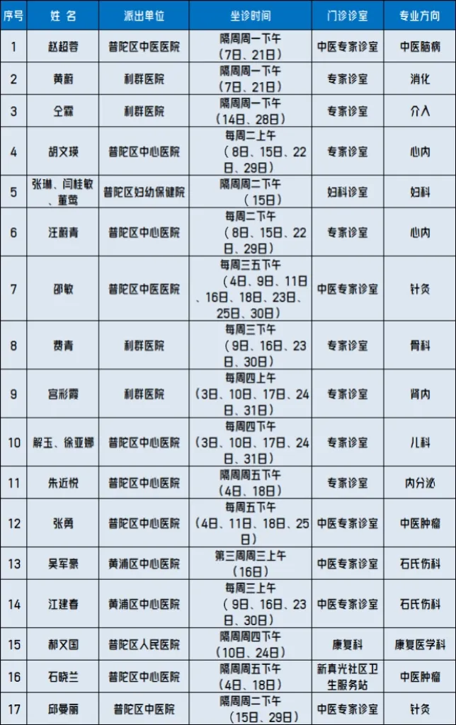 新鲜出炉!真如社卫7月专家门诊安排来了