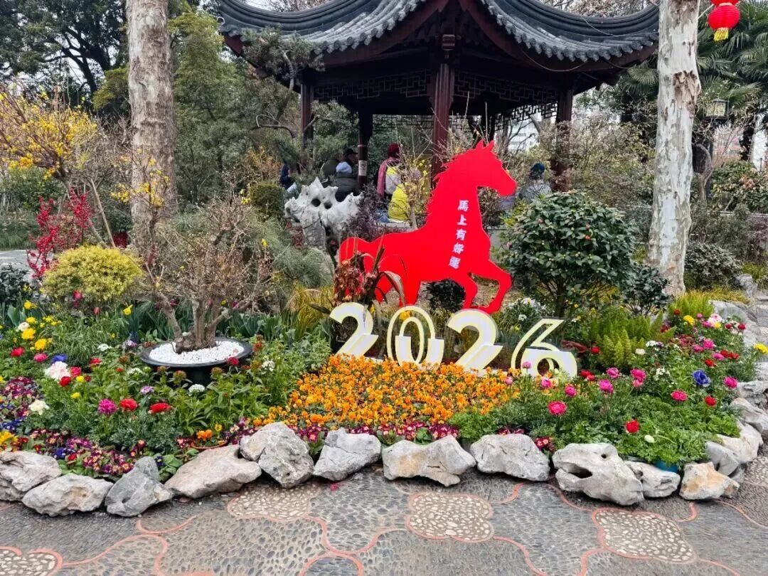 本次展览主题“马行旷野 蹄踏千里 梅立寒冬 韵染真如”巧妙融合了马年的奋进精神与蜡梅的傲骨风韵,以园内1100余株地栽蜡梅及百余盆蜡梅盆景为核心,融入马年元素,营造出新年喜庆的节日氛围。