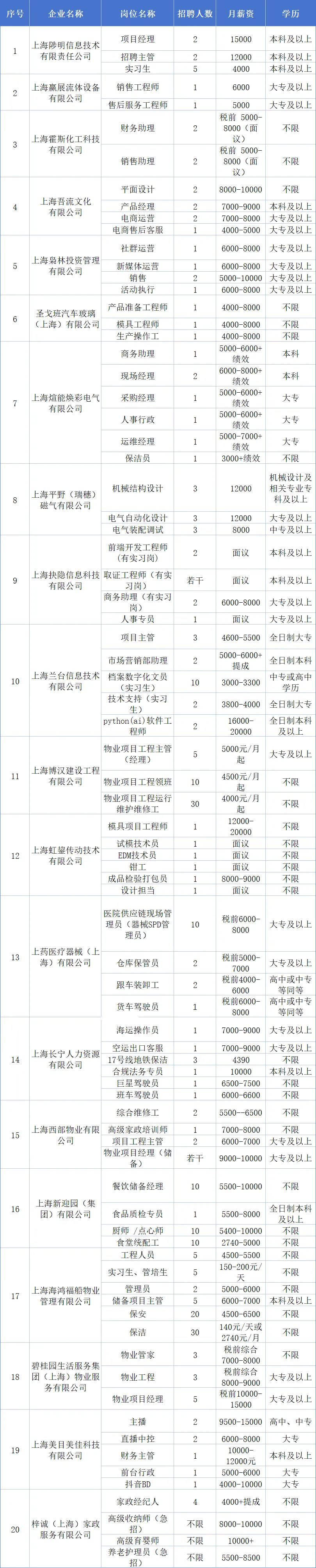 部分参会企业及岗位信息