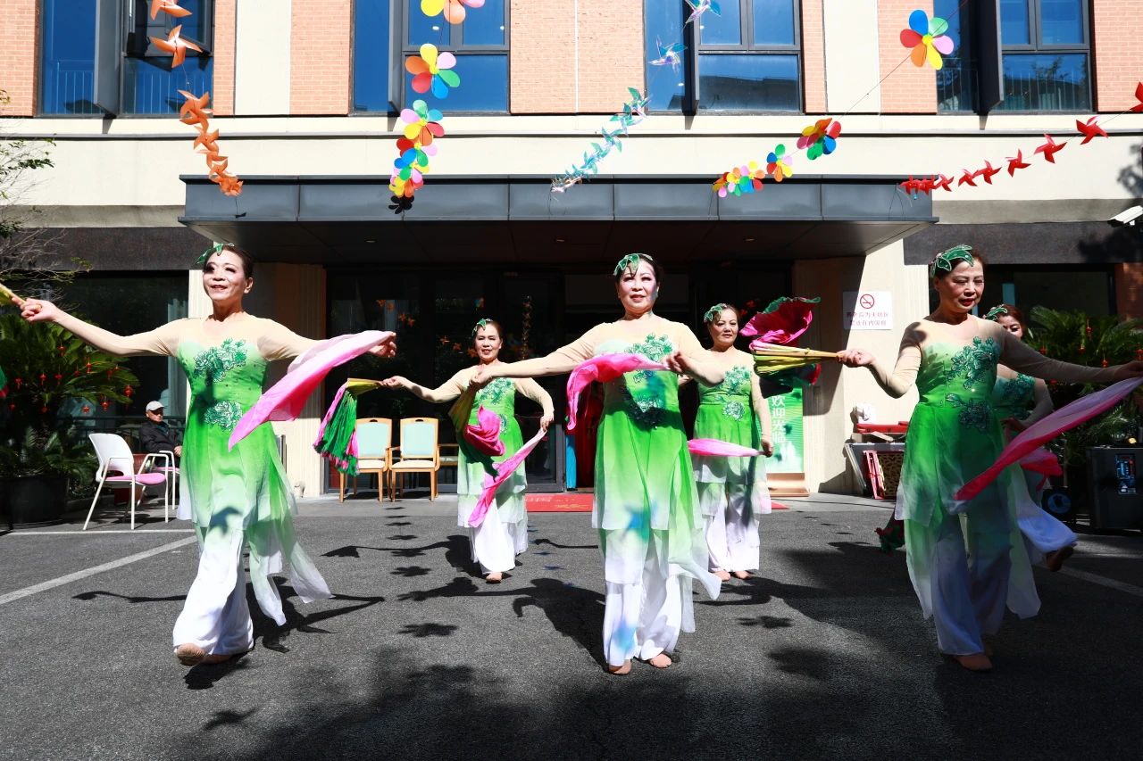 歌曲《喜洋洋》和《春江花月夜》为演出拉开了序幕。随后,沪剧经典曲目《沙家浜》《办喜事》《芦苇疗养院》、越剧表演折子戏《三笑》等引得现场的观众们连连跟唱,热烈的掌声此起彼伏。舞蹈表演《六月清荷》、歌曲《飞吧鸽子》以及时装秀表演等也赢了现场观众的笑声与赞扬。歌声与乐声中,舞蹈队员们鲜艳的衣裙上下翻飞,如同天边浓郁秀美的晚霞。“灯火漫卷的万里山河,初心换回了百年承诺……灯火灿烂的中国梦,灯火荡漾着心中的歌……”演出尾声,舞蹈团队带来《灯火里的中国》。各类型表演带给老人朋友多样的艺术感受,现场气氛热烈,观众激动之情久久难以平静。