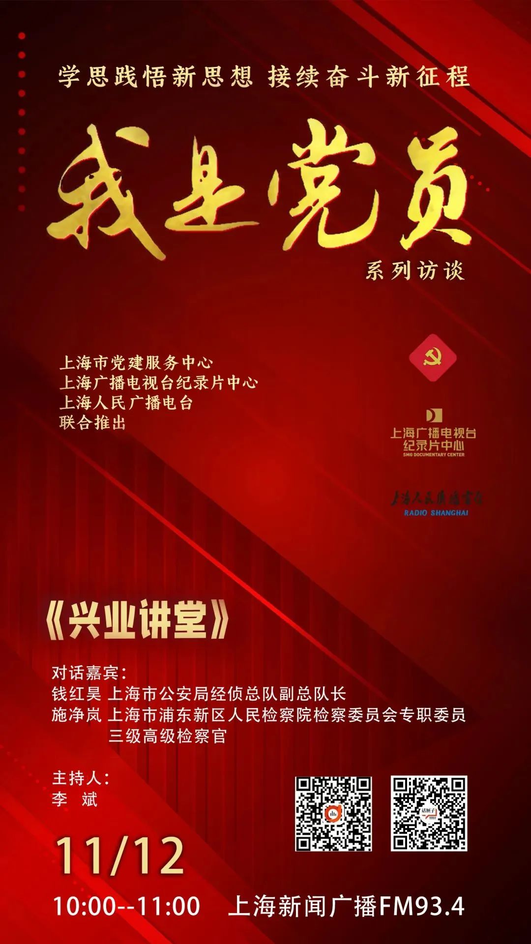 2023年11月11日 来源: 真如镇街道上海市党建服务中心、上海广播电视台纪录片中心与上海人民广播电台、阿基米德联合推出《兴业讲堂·我是党员》系列访谈特别节目。