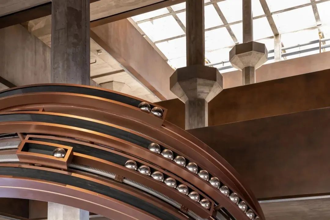 一层序厅的艺术装置《世界引擎》就在建筑本身引光入中庭的空间感之上增加了更多的创意与科技元素,不仅通过精密的机械运转讲述了世界技能的文化内涵,还与历史建筑完美融合,带来兼具舒适度与仪式感的参观体验。