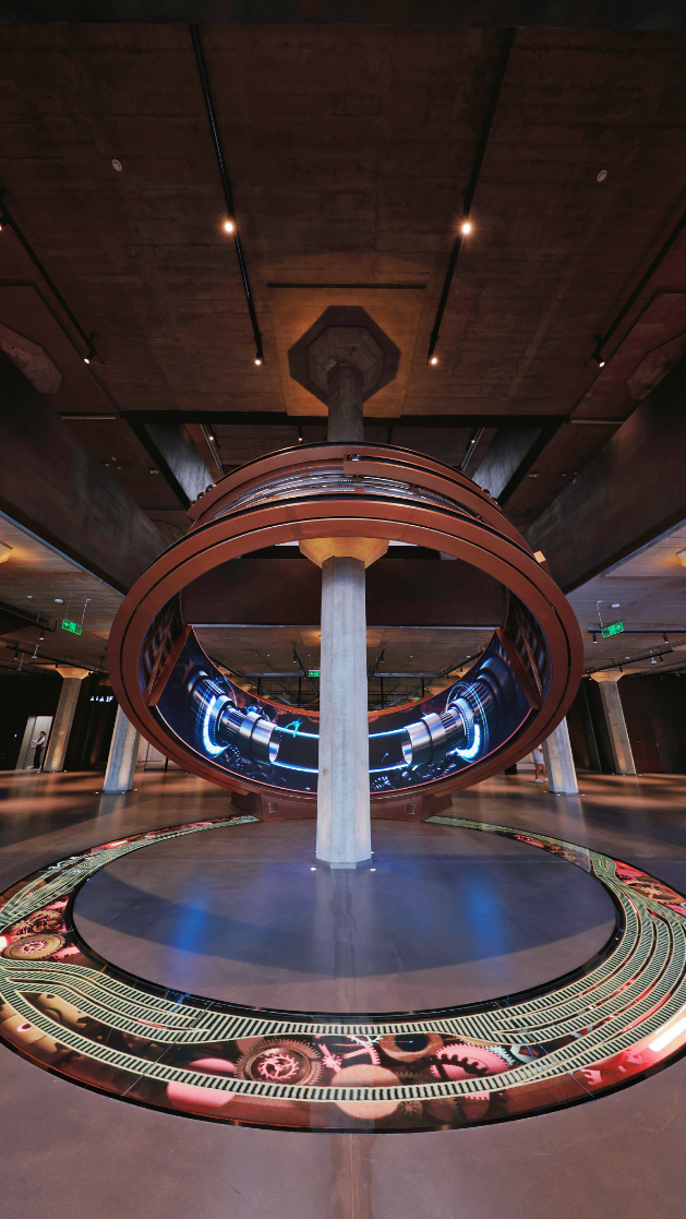 1F 序厅 《世界引擎》,一枚环绕中心柱的“工业戒指”