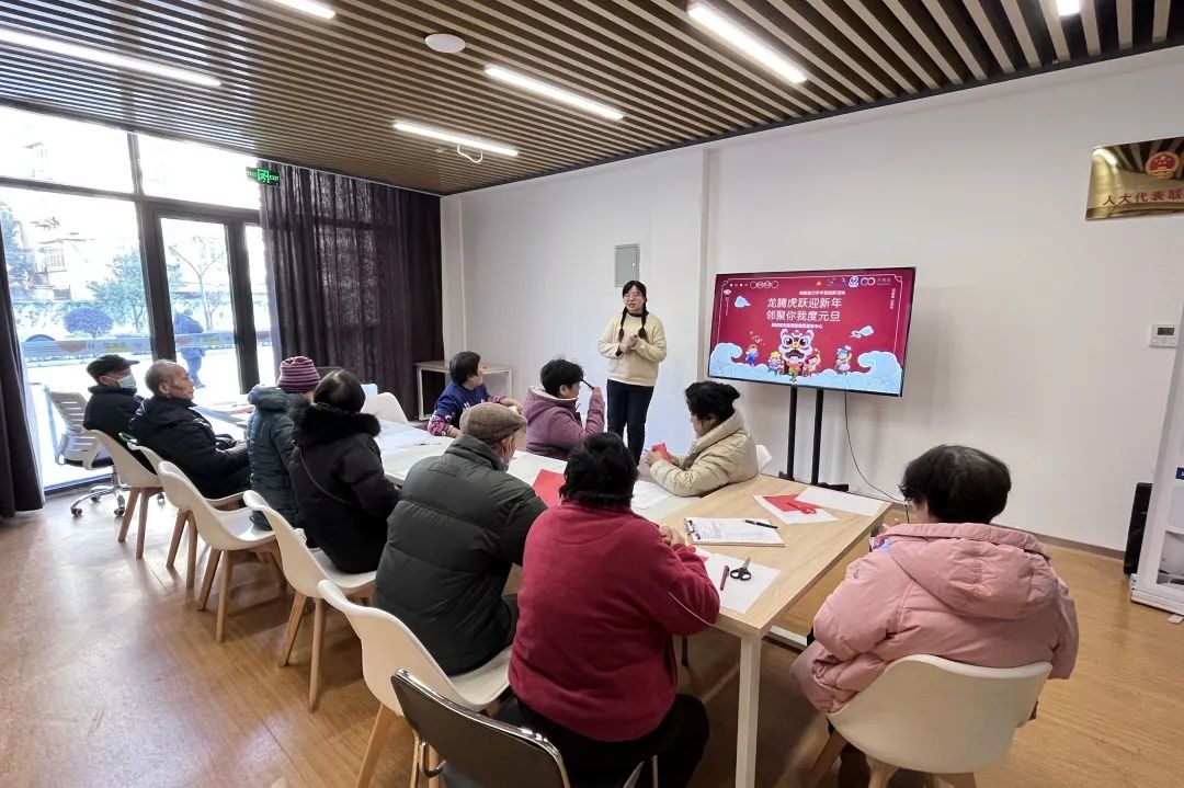 社区居民们一起学习中华传统文化,了解民俗文化知识,体验非遗剪纸,感受非遗文化的传承和魅力。一个个生动形象、趣味十足的龙年祝福剪纸在大家手中跃然而生。大家围坐在一起聊家常、品茶点、剪红纸,喜迎元旦的到来。