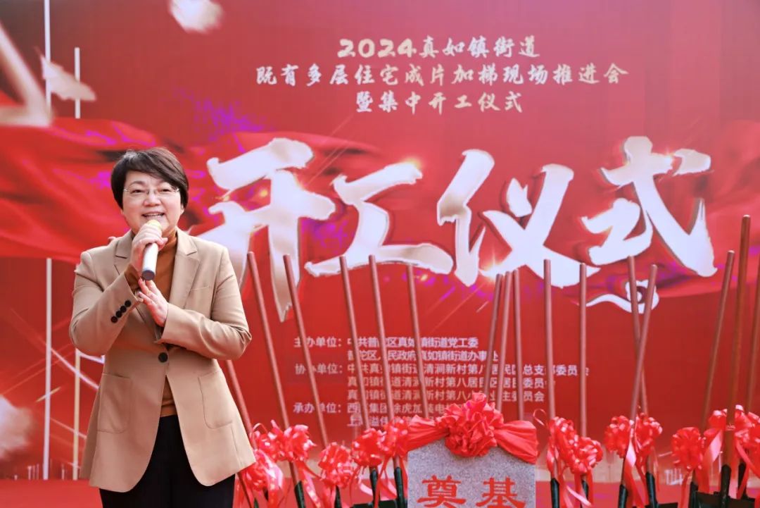 区政协主席杭春芳出席并为开工培土。区政协秘书长、办公室主任钱军梅,真如镇街道党工委书记杨联中,党工委副书记、办事处主任赵勇,西部集团党委书记、董事长江蕾,街道办事处副主任梁艳,区城市更新和住宅配套事务中心主任鲍德好出席。街道相关职能部门,代建及施工单位,居委会,清涧八小区业委会、物业、居民代表等参加。