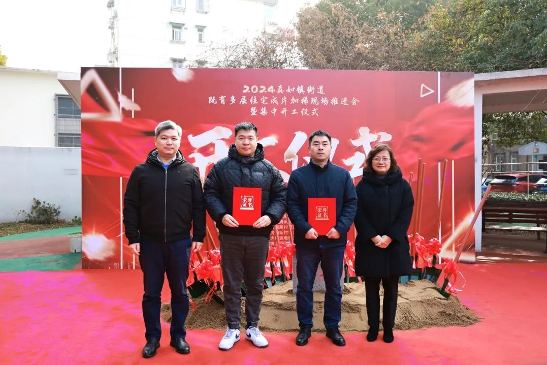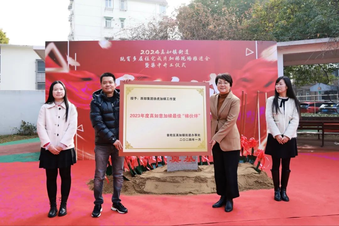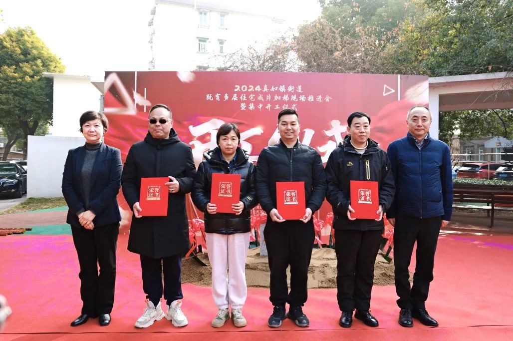 每台“加梯”成功的背后,离不开多方沟通协调与努力,本次开工仪式现场为代建单位、居民区、施工单位授予荣誉。