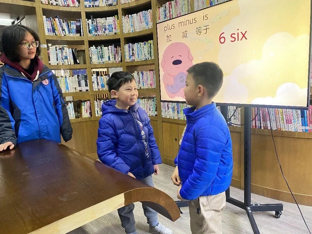 真如社区图书馆和真如党群服务中心还通过积极引入高中学子服务资源,开展了趣味少儿英语启蒙公益课堂,激发孩子们学习英语的热情,共享学习的快乐。