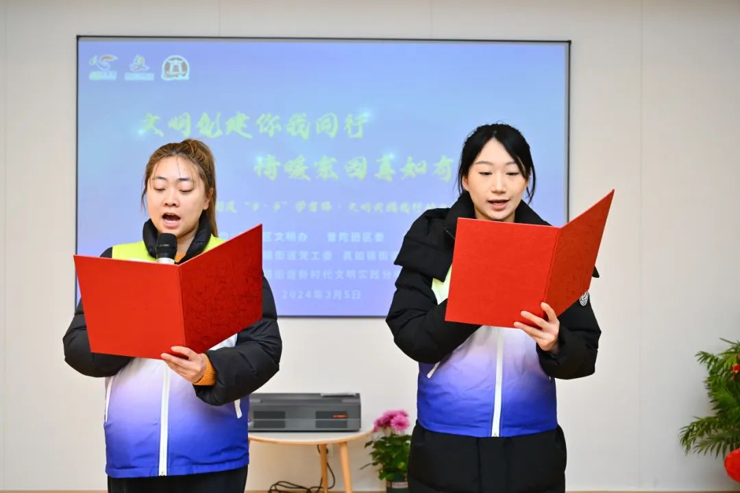 真如镇街道党工委副书记龙伟平、普陀区文明办创建协调科科长何光远为新设立的新时代文明实践点授牌