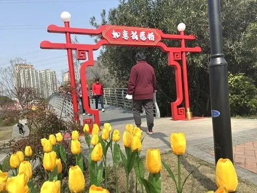 亲子区内,家长们可以带着自家的宝贝们,共享踏青游园的欢乐时光;公园长桥上,抬望眼真如塔,条条红丝带可写下对新一年的祝愿与期盼。