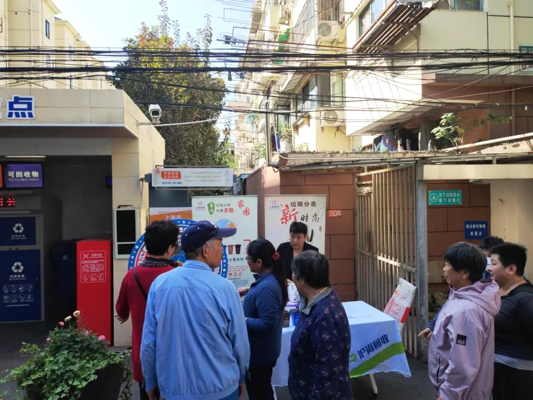曹杨花苑(北块)引入蓝鲸公司提供的可回收物分类服务,持续推动玻璃、金属、塑料、纸张、织物等可回收物的分类回收精细化。小区设置绿色环保小屋作为分类宣传阵地,探索与湿垃圾资源化利用相关的1米菜园,开展周期性废物利用DIY、居民闲置用品再利用、“小手拉大手”科普宣传等,形成行之有效的社区自治特色。