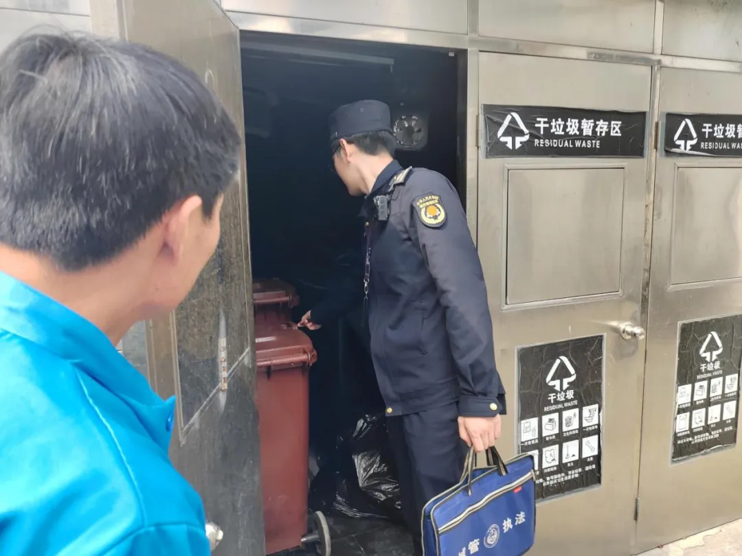 检查中,执法人员发现个别单位存在垃圾分类工作不规范之处。对此,联合执法检查人员告知单位垃圾分类负责人,要杜绝虚假分类、形式分类,切实提升垃圾分类投放质效,并进行了相关法律法规的宣传教育,要求其立刻整改。对于不能立即改正的问题,执法人员现场开具责令整改通知单,并告知当事人后续会对整改情况进行跟踪回访,确保该区域接下来的垃圾分类管理工作按照标准落实。