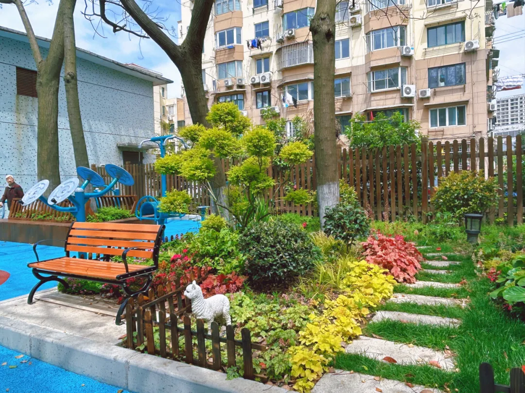 焕然一新的健身器材、修剪平整的阳光草坪、精心搭配的自然花境,充满童趣的羊驼小景,令人应接不暇。还新增了环形座椅供居民们日常交流、休闲歇脚;建成一条“小径”,兼具美观和实用功能。整体来看,不仅比之前“养眼”多了,而且绿化景观更加精致、空间布局更加优化,打造出一个融合绿色生态、活动共享的新空间,成为了居民们常来爱来的家门口好去处。