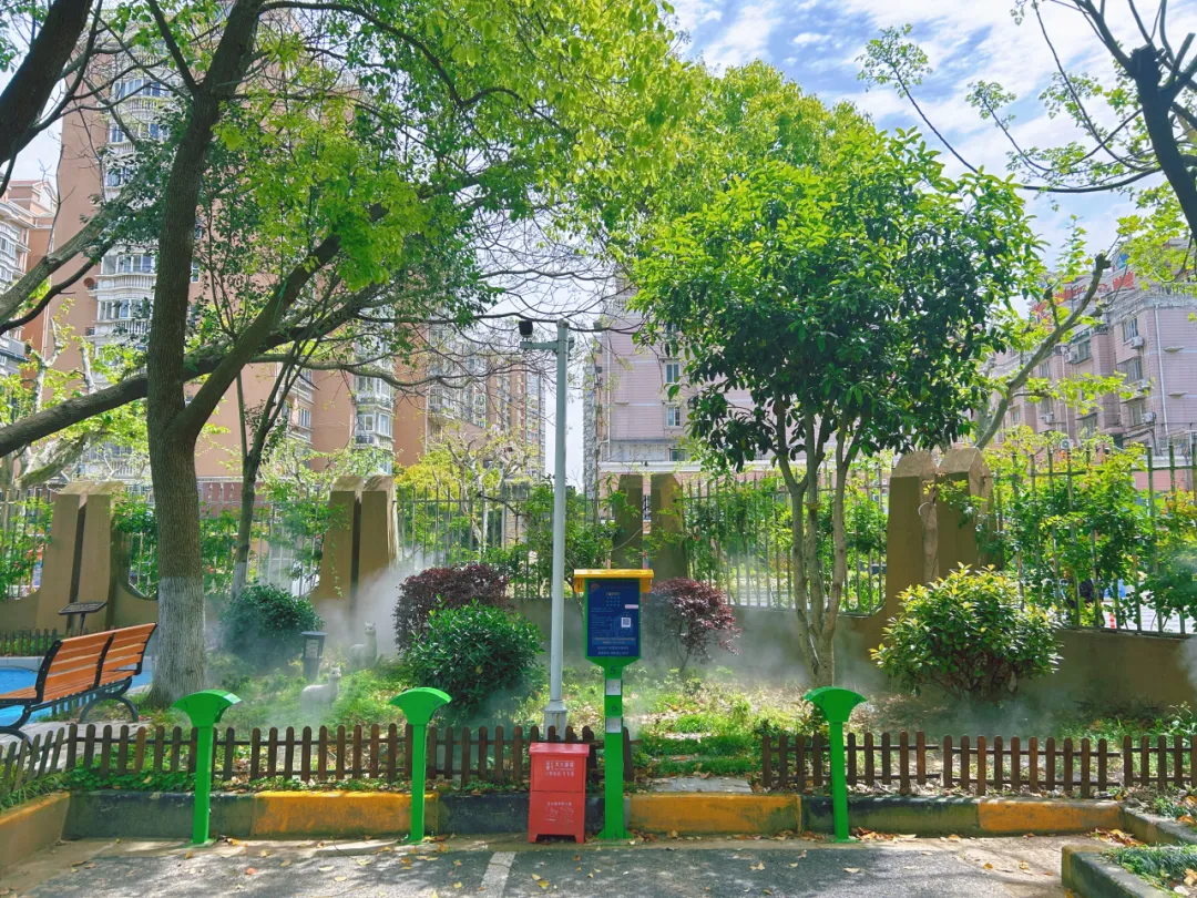 历经前后4次调整设计方案后,如今小区益智健身点的功能得到重新布局设计,不再紧邻马路,并新增了雾化系统起到降尘、灌溉及夏日降温作用,美观度上也得到了提升。