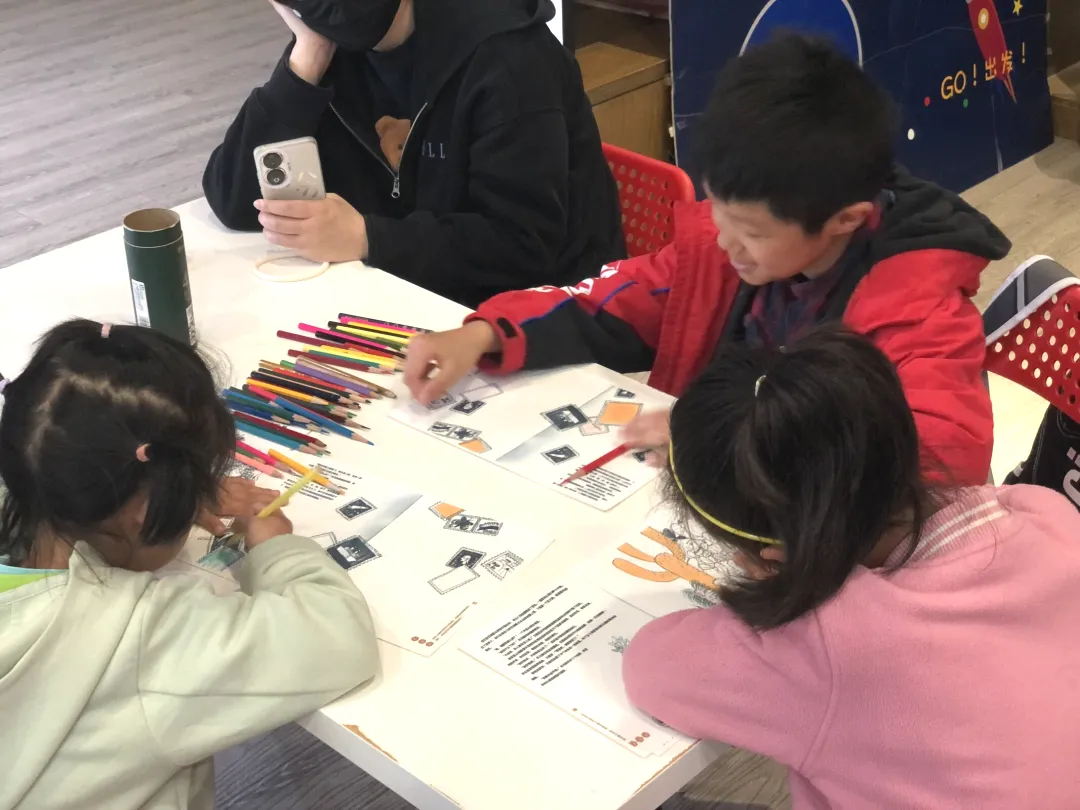 “快看,这是我的作品,是爸爸和我一起做的!”一位小朋友拿起勾画完毕的纸张,兴奋地和老师分享起来。除了老师的个性化指导,家长们的积极参与也是本次活动的重点,拉近了孩子与家人间的距离、激发孩子的沟通互动主动性,现场氛围热闹而温馨。