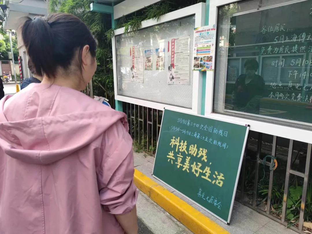 在全国助残日和上海助残周期间,真如镇街道残联在41个居民区,通过社区电子屏、黑板报等形式,向社会大众传递残疾人权益保障信息,吸引居民驻足观看。