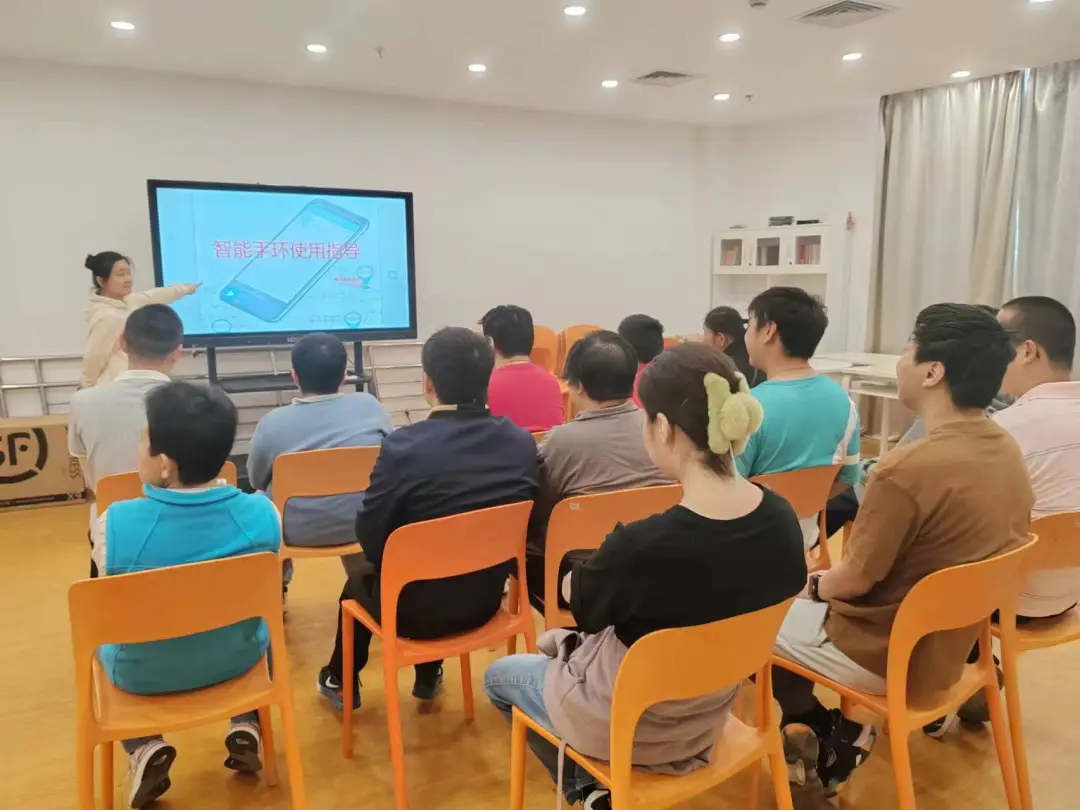 为让适合人群早日使用这款智能辅具,享受科技红利,街道残联为阳光家园部分符合标准的学员申请了这款辅具,并组织取得智能手环的残疾人进行使用指导,为他们讲解智能手环的使用方法和注意事项。