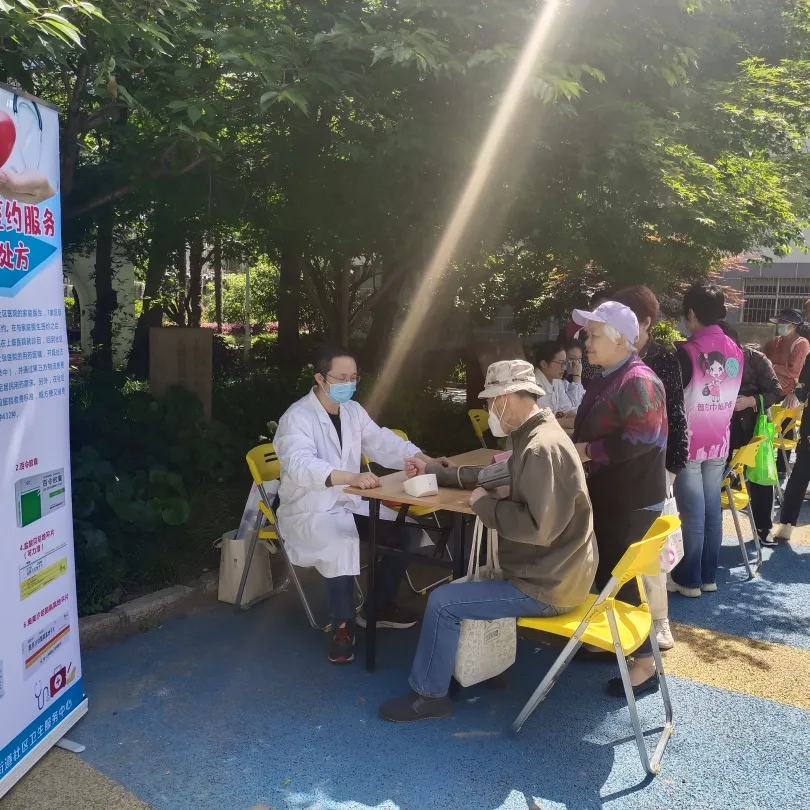 结合“5·19”世界家庭医生日,真西二居民区党群服务站特别邀请了真如社卫、利群医院的医务志愿者们在樱花苑小区广场上开展义诊服务。