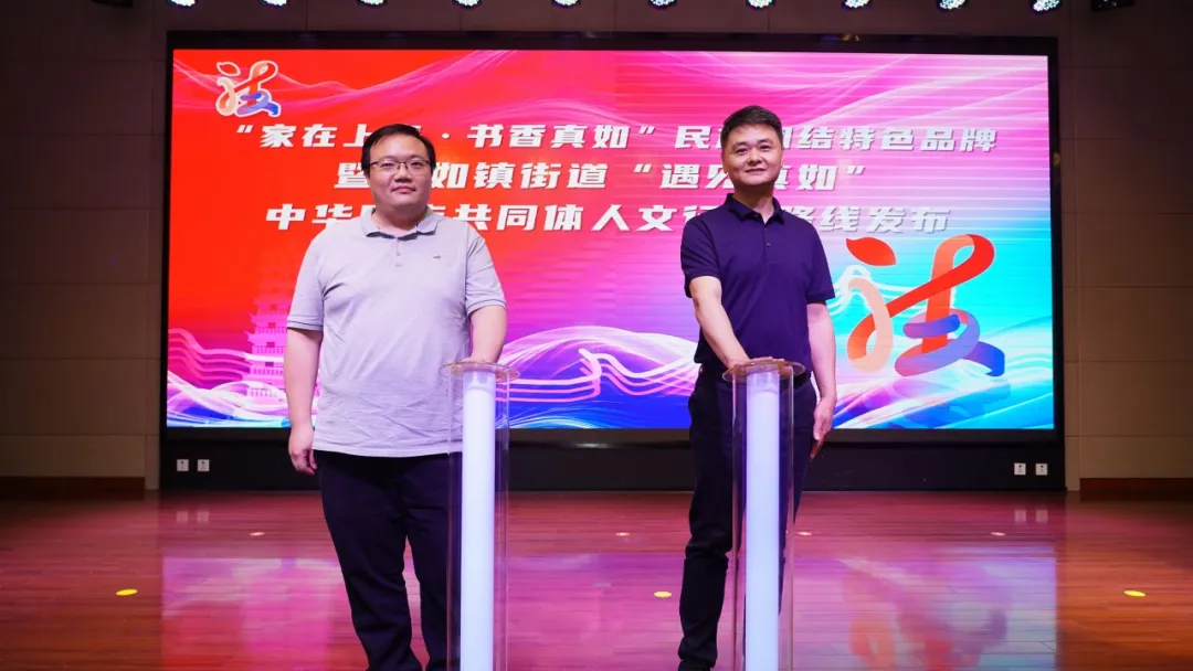 卫未、卢瑶共同发布“家在上海·书香真如”民族团结特色品牌暨真如镇街道“遇见真如”中华民族共同体人文行走路线。“家在上海”城市民族工作品牌建设是打造民族理论和民族工作实践创新的上海范本,是推动新时代党的民族工作高质量发展的重要抓手。真如镇街道积极对接,主动谋划,创建了“家在上海·书香真如”民族团结工作特色品牌项目,并打造出别开生面的中华民族共同体人文行走路线,以促进各民族之间的相互了解和欣赏,进一步巩固民族团结。