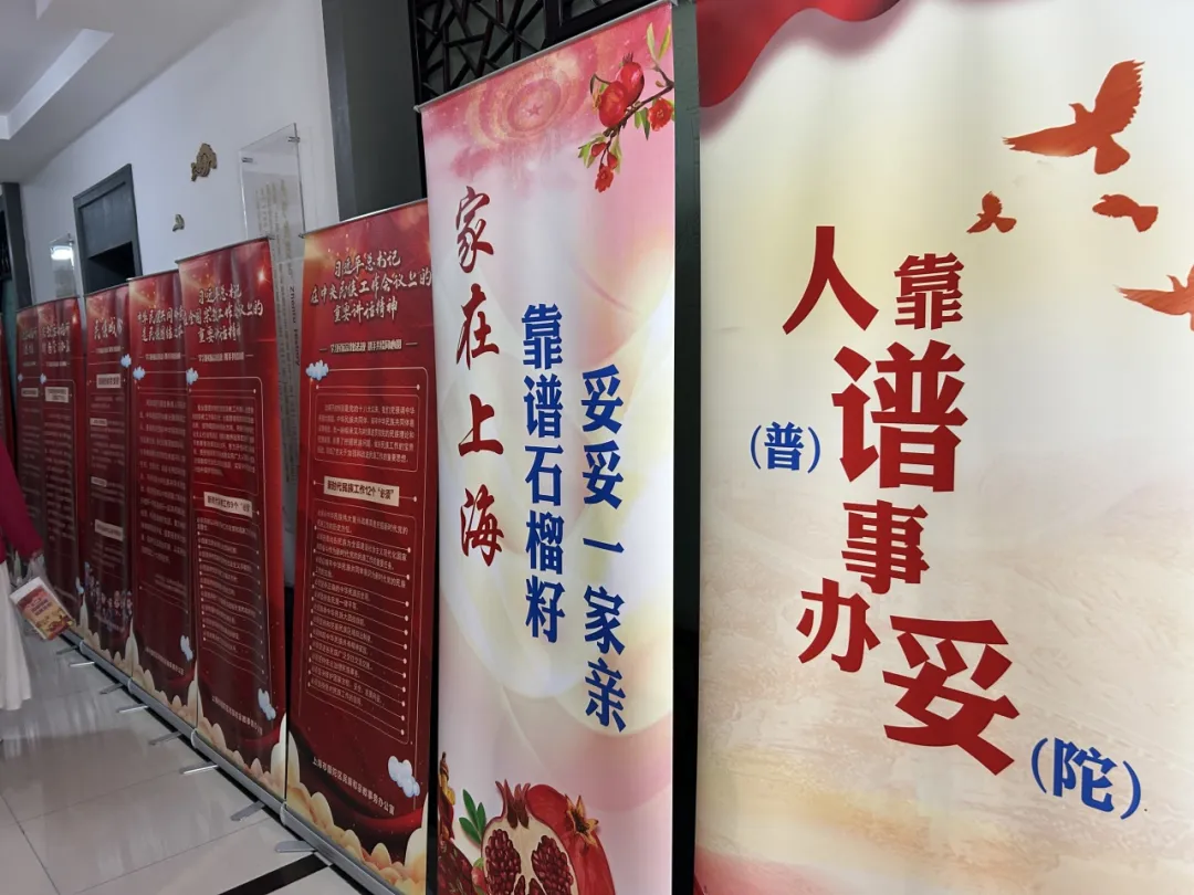 参观者们不仅领略到真如镇街道深厚的文化底蕴、商贸的蓬勃发展,更在这里深刻感受到了“中华民族共同体意识”的浓厚氛围。现场精心布置了相关知识展板,以及醒目的宣传标语如“中华民族是多元一体的伟大民族”“手拉手、心连心,民族团结一家亲”等,深深触动了大家,传递出温暖与团结的力量。