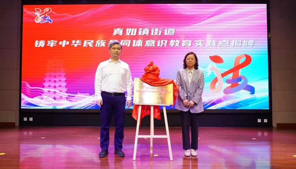 蒋悦新、赵勇共同为真如镇街道铸牢中华民族共同体意识教育实践点揭牌。为深入做好社区铸牢中华民族共同体意识教育工作,真如镇街道统筹各类社区资源,打造了铸牢中华民族共同体意识教育阵地,将通过丰富多样的教育活动和互动体验,让居民们更加直观地了解民族宗教政策法规,进一步增强民族团结意识。